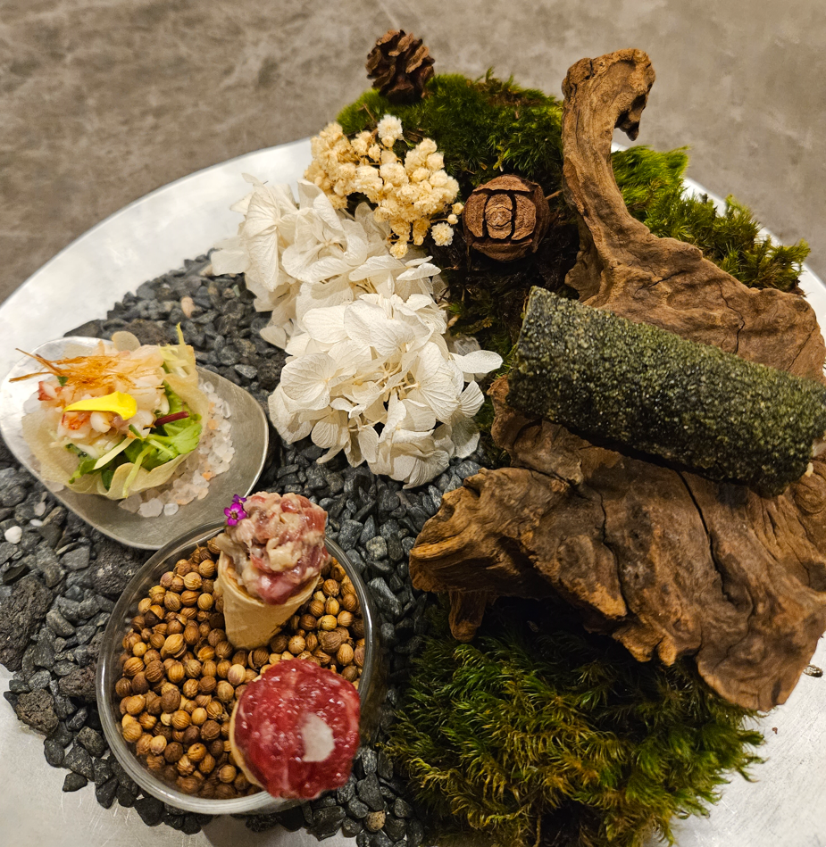 시계방향으로 랍스타타르트, 불고기, 육회이다. 모양은 이쁜데 맛은 평범했다.