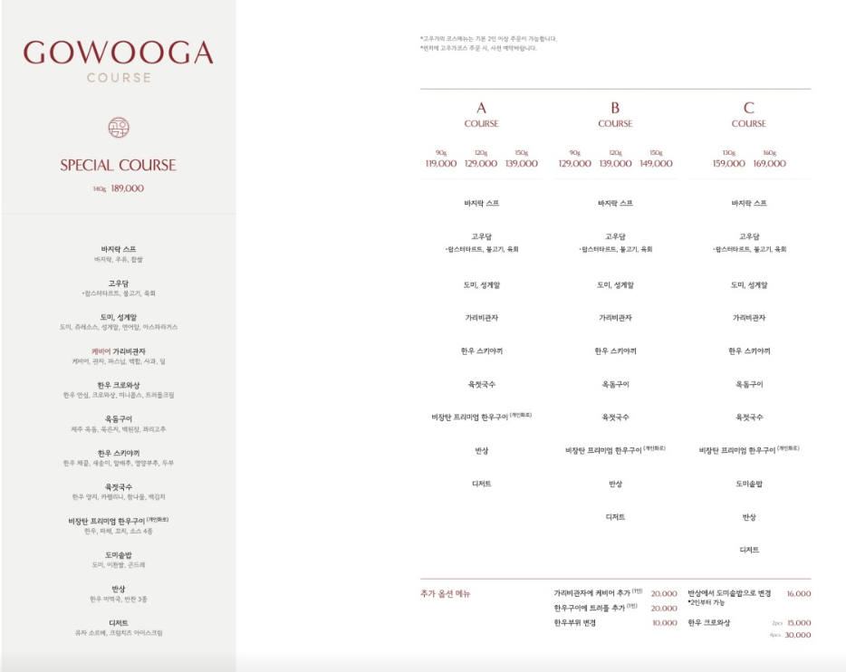 지하2층에 위치하고 있는 고우가 라는 한우 코스요리를 하는 곳이다.