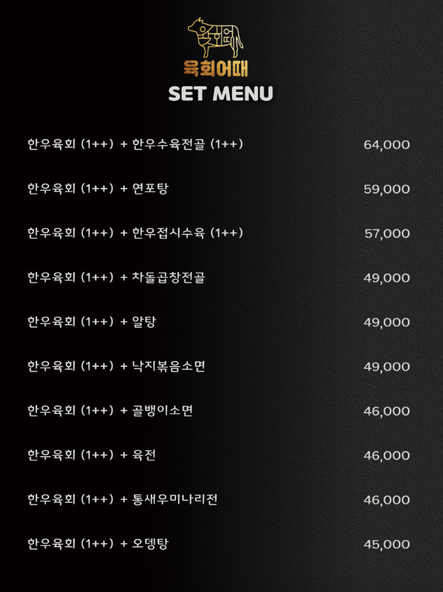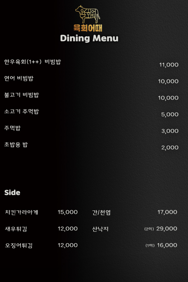 육회어때의 대표 메뉴는 다음과 같습니다: